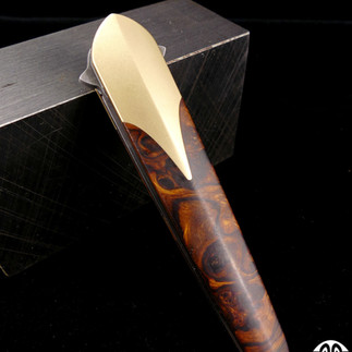 À gagner à cette occasion : cette petite dague Cosmopolitan, la première à avoir des mitres de ce style Art Nouveau ... Mitres laiton, manche en bois de fer et lame en inox rwl34 stonewash, et le tout en visserie cachée...